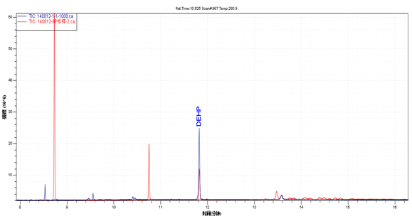 原辅料TIC图(海蓝)与邻苯混标TIC图(洁白)