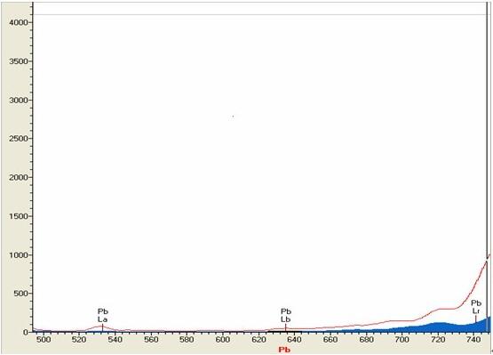 如图是实谱症状纯铜rc101(Pb,0ppm)即本底、灰黑色虚谱为 镍白铜313(Pb:60ppm)