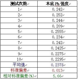 镍白铜313(Pb:60ppm)中Pb检出限:(3×0.013)/ 0.0036 (任务曲线斜率)