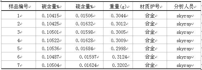 一不锈钢行业标准GBW(E)010136-9901(C%:0.104,S%:0.015)用高頻红外碳硫仪168型软件测试成就下面的: