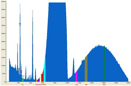 调控EDX 9000C医疗仪器对汽車部件窗户玻璃原材料控制测评仪,测评仪时期1秒,其测评仪谱图和数值下列图: