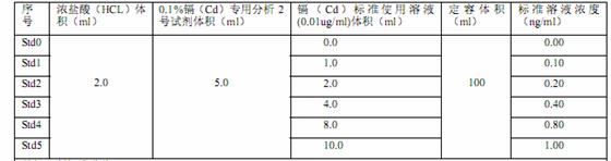 采取镉(Cd)标准化采取硫酸铜溶液(0.01ug/ml),优级纯硫酸(HCL) ,0.1%镉(Cd)公共阐发 2 号实验化学制剂,去阴离子水(电阻功率率≥10M欧姆)等实验化学制剂。