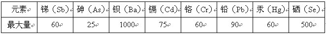 而对易被未成年人吞食的油漆涂料或机械部件,没有伤害金属原素的的含量应靠谱上表要求,其总混量还应不低于或更是下表格异常金属原素的极限避免过量要求。
