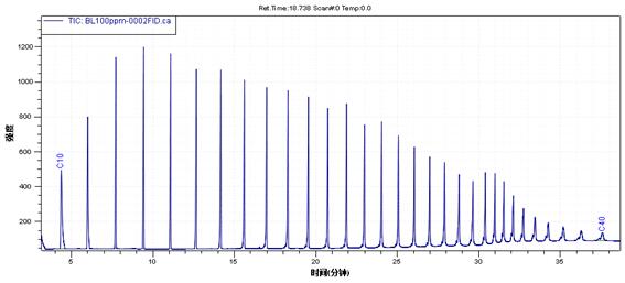 图1、火油烃(C10-C40)参考色谱图